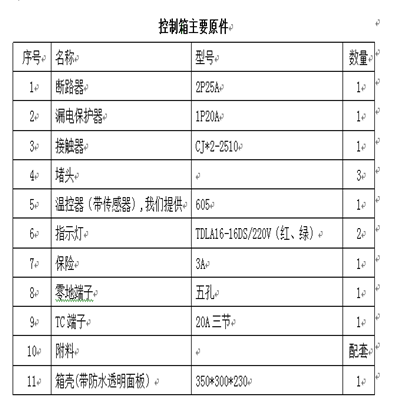 電控柜配制清單