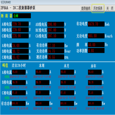 電力監控系統中所有需要的數據都能以圖的方式、用曲線圖、棒圖來顯示,或者預處理成為表的方式來報告。系統中提供多種報表,對每個智能電表回路提供電流、電壓、電度(累積值)實時和歷史報表;可以根據需要設計按變壓器或進線柜或其它分組方式的報表;