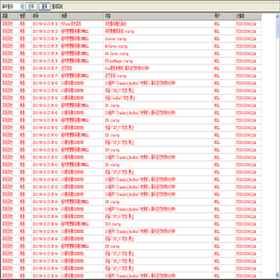 過程目標在它們每次狀態改變時,激活的事件特性將與時標一起保存在動態事件緩沖區中。操作員從事件列表圖形中,可看到事件的描述內容。事件列表能根據它們的站號、信號名稱、子系統名稱、日期與時間分類查尋。事件列表每天可儲存10000條。事件以每天的文件儲存并能保存10年時間。